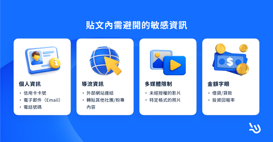 除了系统预设规则,管理员常会针对特定内容设定隐藏限制。若你的贴文包含以下资讯,极大机率会被送入审核区或直接拒绝:
